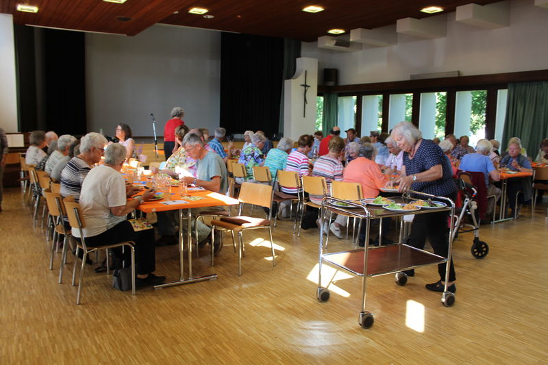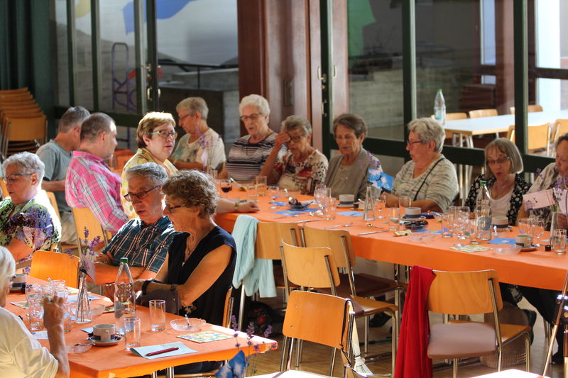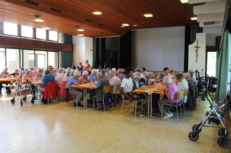 Das diesjährige Sommerfest wurde für einmal im Pfarreiheim St. Martin Bruggen durchgeführt. Insgesamt lockte die Veranstaltung 55 Gäste an, davon viele Frauen und Männer aus dem evang. Pflegeheim Bruggen. Mit Geschichten, Spiel und Gesang sowie mit einem feinen Nachtessen schloss der unterhaltsame und vielseitige Nachmittag. Ein herzliches Dankeschön für den feinen Dessert geht an die Küchenmannschaft des evang. Pflegeheims.